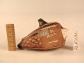 Додаток до назва (лист, ...): На спинці качки широке воронкоподібе горлечко, до якого збоку прикріплена кругла ручка. Хвіст - у вигляді носика - завершується отвором, можливо, для гноту. Крила розписані коричнювато-чорними смугами по білому тлу. У передній їх частині, а також на спинці і животику схематично намічено пір'ячко. Груди білі, хвіст, горлечко, ручка і дзьоб чорні./Аналогіi: Аналогії, вказані у науковій картці Ф.М. Штітельман (1962 р.):