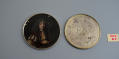Додаток до назва (лист, ...): Форма кругла сплющена. На кришці зображено воїна з мечем та жінку у шеломі із списом в руках/Кількість: 1