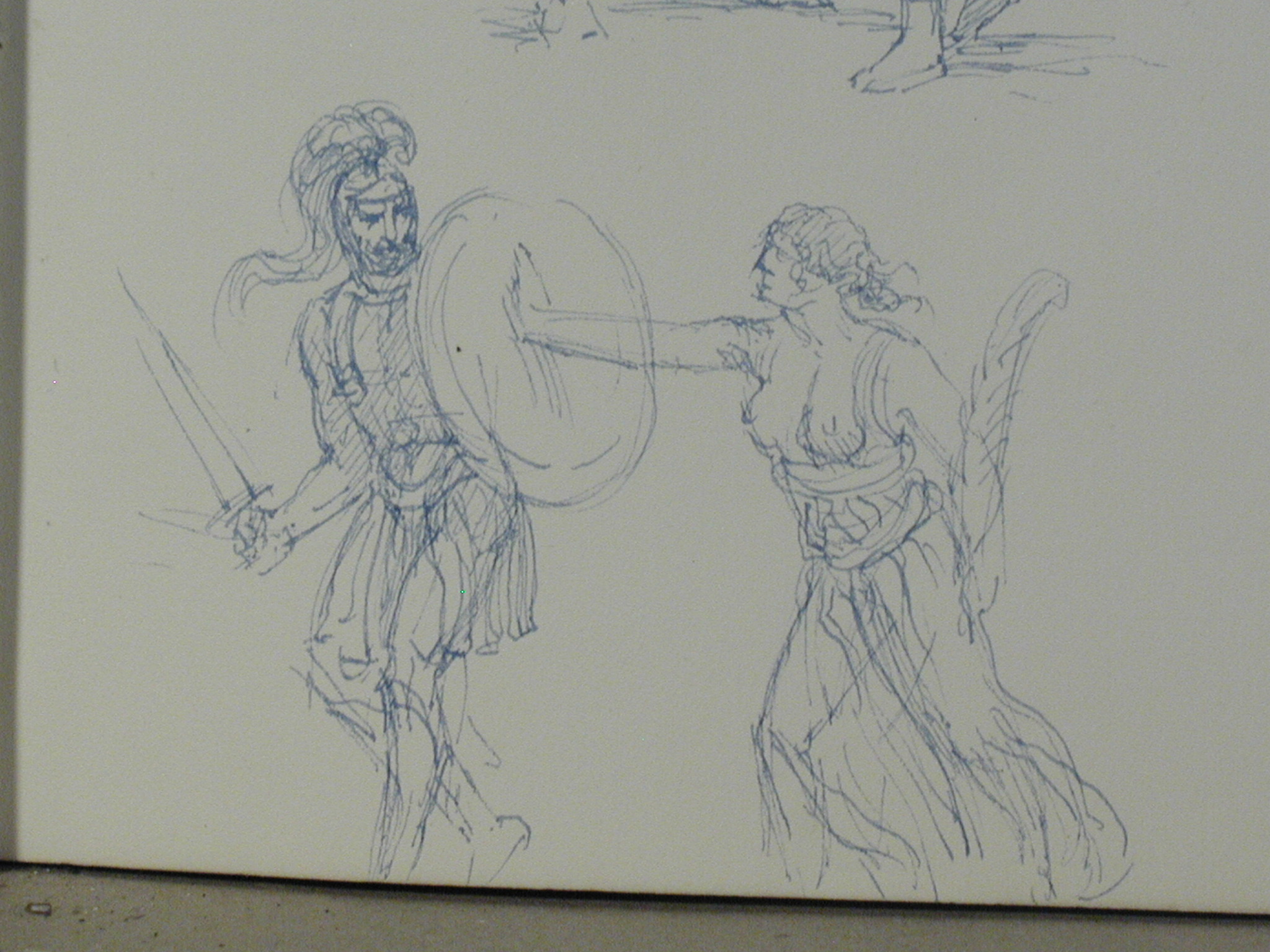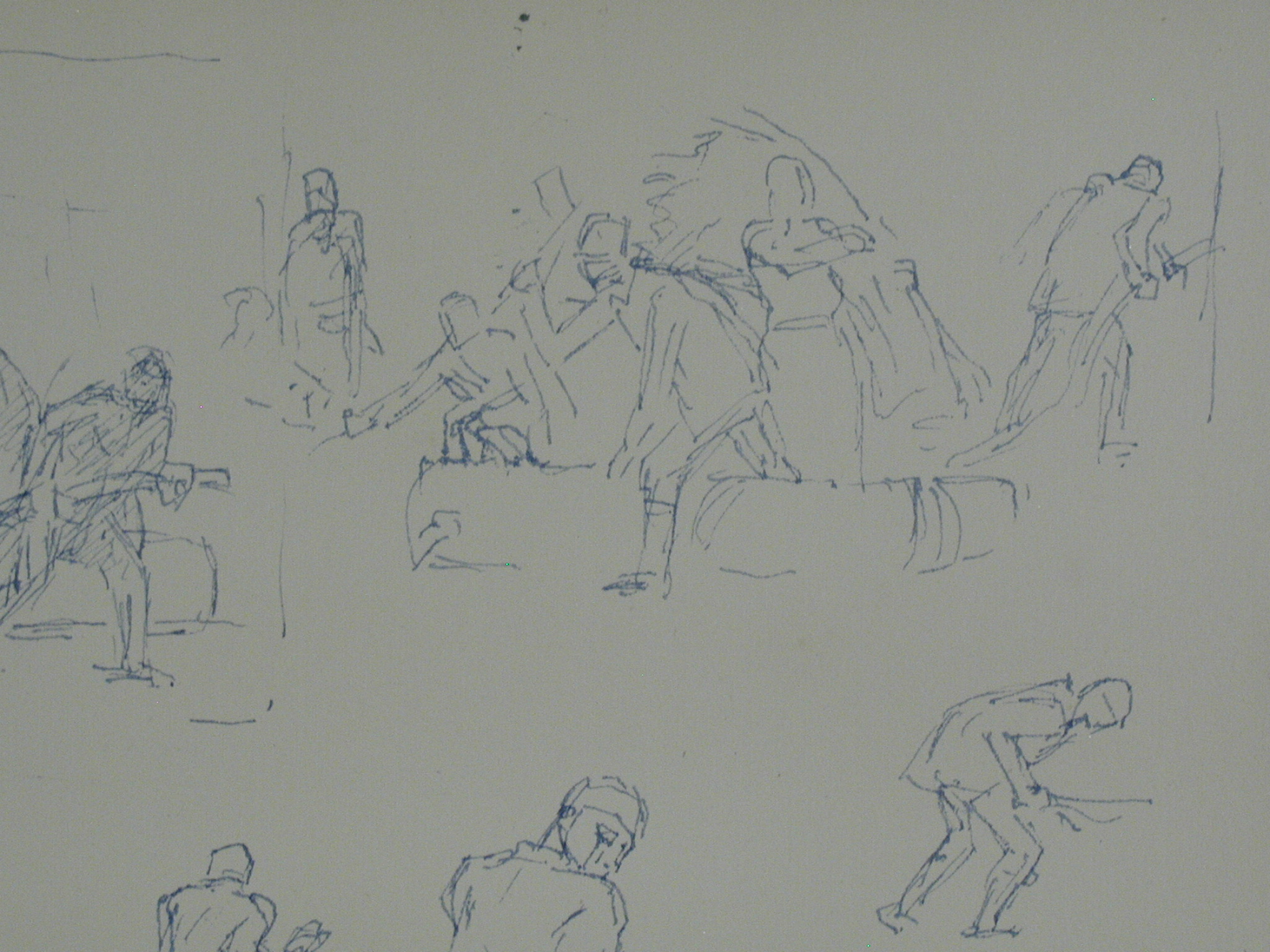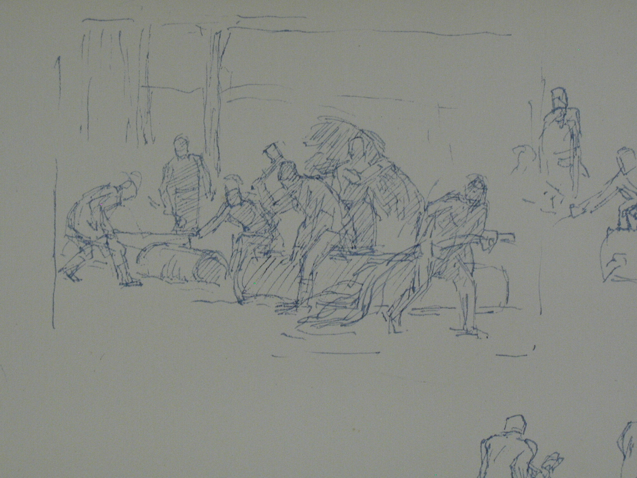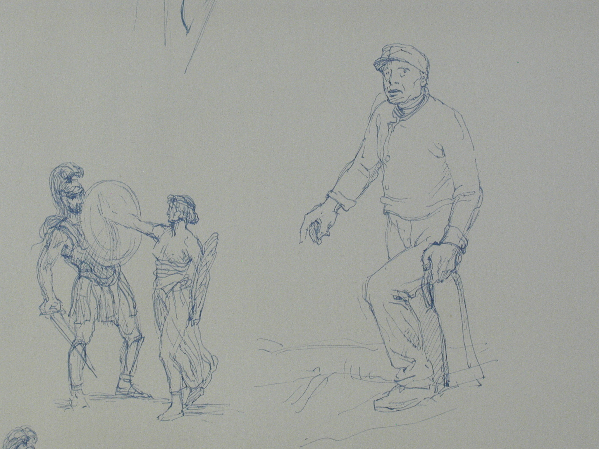 Кількість: 1/Опис: Тринадцять різних начерків. Ліворуч - погрудний чоловічий портрет, внизу - римський воїн. В центрі - чоловік, що іде вліво.