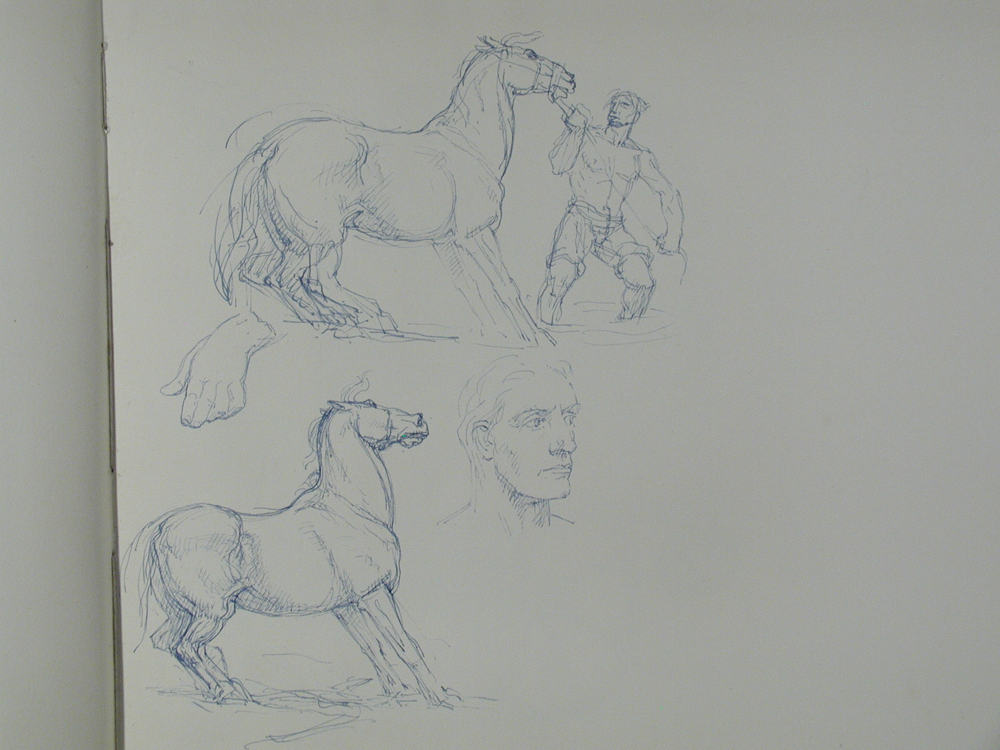 Кількість: 1/Опис: Купання коня. Начерк. Вгорі зображення чоловіка, що веде коня у воду. Нижче - чоловічий портрет і начерк фігури коня.