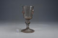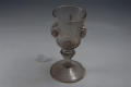 Додаток до назва (лист, ...): Скло рожевого кольору. Має фігурну ніжку.З трьох сторін келиха - ручки з загнутими вгору кінцями, на ручках кільця. Декорований гравіруванням./Кількість: 1