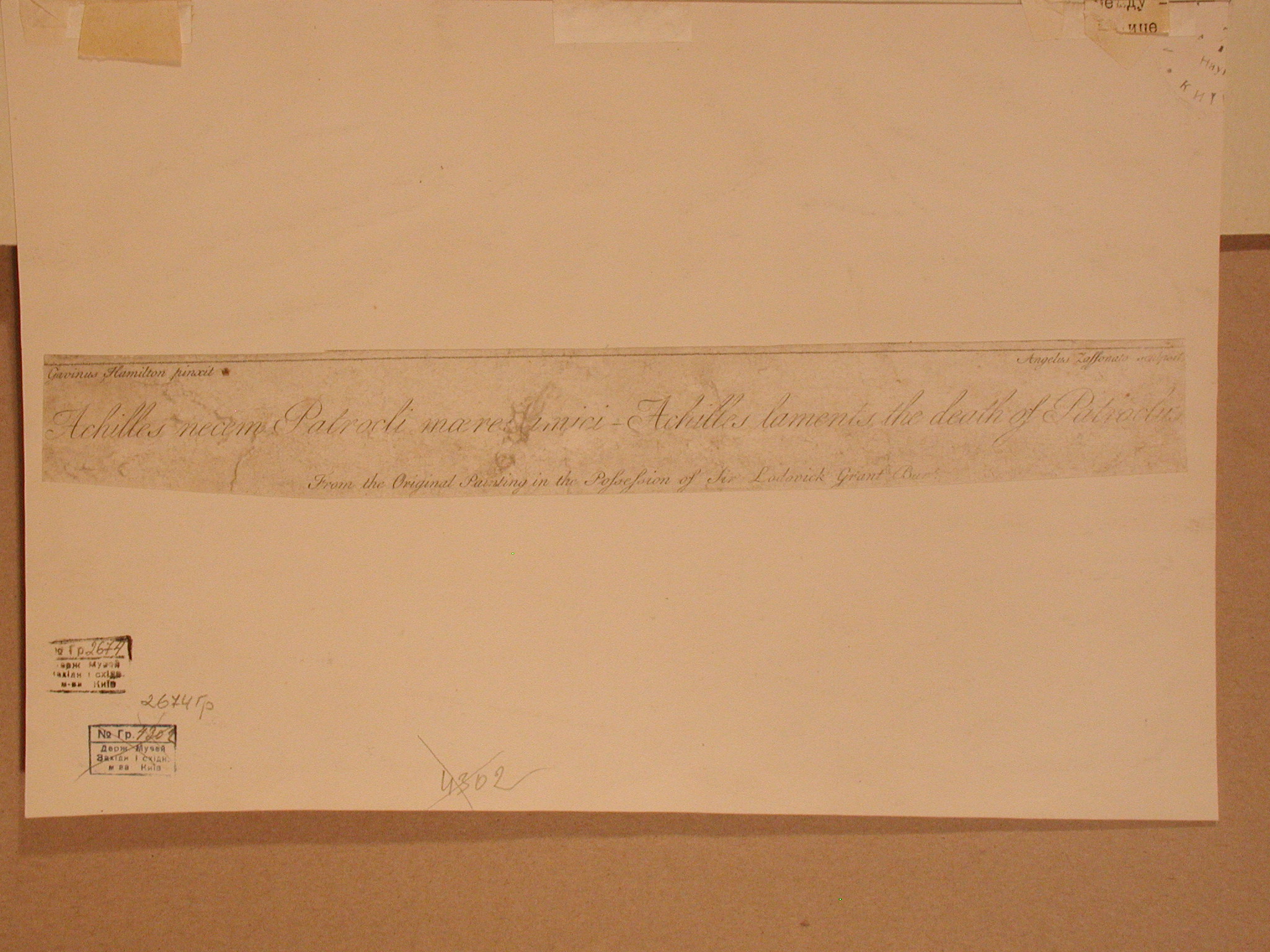 Аркуш обрізаний, наклеєний на папір, ліворуч зареставрований розрив.,