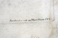 Аркуш обрізаний, забруднений, плями, велике затікання у лівому верхньому куті, численні надриви по краях підклеєні зі звороту. По центру горизонтальний злам.,
