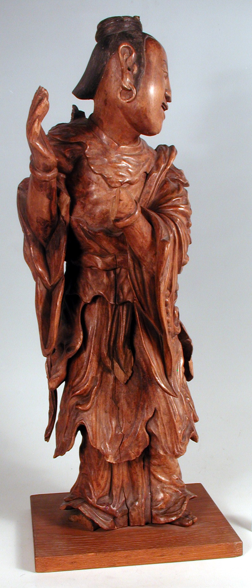 Відбито кисть лівої руки, мізинець правої руки, пальці ніг і шматочки зачіски та одягу, шматочки сережок. Ніс стертий.,