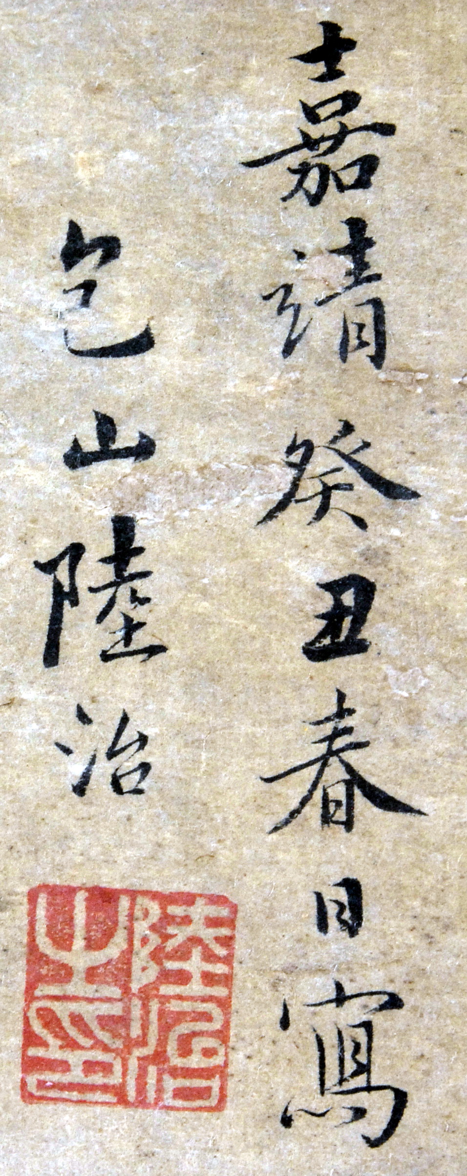 Информацiя об оригiнале: «Весняного дня року Гуйчоу правління Цзяцин написав Лу Чжи»/Історія Атрибуціi: 1) Липень 1933 – грудень 1943 Ван Бінхуй (Жозеф Вампінфи) визначив як твір Лу Чжи (1496-1576) (рукописний архів музею 588-3 КЖ); 2) 1963 Музей Гугун (Ян Бода і Тянь Сю) «Копія з Лу Чжи періоду Кансі»; 3) 1965 Інститут Історії Мистецтва МК СРСР (Москва) Соколов С.Н.: «Тонко. Може бути і Кансі» (інвентарна картка)/Кількість: 1/Опис: Вертикально розташована вузлувата гілка з білими квітами утворює зигзагоподібну лінію. На гілці один над іншим, і обернені один до одного, сидять два горобці з оранжево-коричневими головами.
