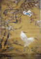 Історія Атрибуціi: 1) Липень 1933 – грудень 1943 Ван Бінхуй (Жозеф Вампінфи) визначив як твір Шен Цюань (рукописний архів музею 879-2 КЖ); 2) 1965 Інститут Історії Мистецтва МК СРСР (Москва) Соколов С.Н.: «Невідомий майстер 18 – початку 19 ст. за мотивами живопису Шен Цюаня.» (інвентарна картка)/Кількість: 1/Старі документи прийому: Акт закупівлі № 157 від 20.11.1959/Опис: Праворуч внизу стоять дві білі чаплі, тулуби яких обернені в різні боки, проте голови обернені праворуч. Лівроруч зростає сливове дерево з товстим зигзагоподібним стовбуром, вкритим вузлами та дуплами. Деякі гілки дерева рясно вкриті квітами. Вгорі по центру на дереві сидить пара голубів. Їхні тіла – так само, як і в чапель – зображені у різних ракурсах, проте голови птахів обернені одна до одної.