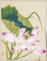 Історія Атрибуціi: 1) Липень 1933 – грудень 1943 Ван Бінхуй (Жозеф Вампінфи) визначив як твір Цзя Сун, доба Цин (рукописний архів музею 1042 КЖ) 2) Напис на палітурці альбому свідчить, що автором є Дзя Ваньцю 賈萬秋 (М.Логвин)/Кількість: 1/Старі документи прийому: Акт закупівлі № 157 від 20.11.1959/Опис: Стебло лотоса з великою рожево-білою розкритою квіткою та великим зеленим листом із загнутими краями. Ліворуч внизу печатка.