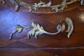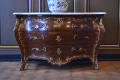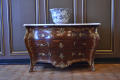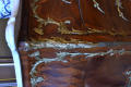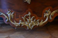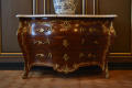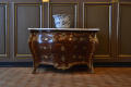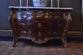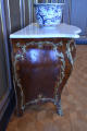 по кутах комод скріплений металевими планками; в декількох місцях випади фанери. Мармурова столешня розбита.,
