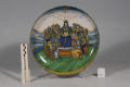 Закладка “Атрибуція” - Змiн.опис: Чаша із зображенням на тлі пейзажу сцени Зшесття Святого Духа на апостолів. В центрі Богоматір на троні в оточенні апостолів. На звороті вздовж борту поліхромний рослинний орнамент та заштрихована пастозним мазком смуга. Фарби сині, жовті, зелені з білилом./Змiн. час створення: друга чверть XVI ст. (каталог Рославець О.М. 2003 р.)Новый материал: майоліка