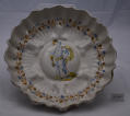 Додаток до назва (лист, ...): Борт хвилястий. На денці зображено фігуру лицяря/Історія Атрибуціi: 1964 р. Михайлова Ольга Ернестівна (Державний Ермітаж): 17 ст. У 16 ст. не було жодної білої, у 17 ст. робили під порцеляну. Не дуже цікава.
