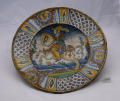 Закладка “Атрибуція” - Змiн.додаток до назва (лист, ...): Блюдо із зображенням на денці вершника із списом наперевіс./Змiн.опис: Блюдо з широким бортом, із зображенням на денці, на тлі краєвида чоловіка верхи на коні із списом напервіс. По борту орнамент із шісти роздідених смугами радіальних секцій, у яких лускоподібний орнамент чередується з рослинним орнаментом із стилізованних квітів. Фарби сині, жовті, зелені. коричневі.Новый материал: майоліка