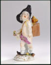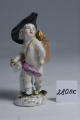 Закладка “Атрибуція” - Наим. предмета, издания: Амур з магічним ліхтарем з серії "Переодягнені амури"/Змiн. розміри: висота 10,6/Змiн. Написи, клейма, марки: Марка синя підглазурна (на підніжжі ззаду): схрещені мечі./Змiн.опис: Амур з чарівним ліхтарем, який стоїть; його спина та стегна прикриті бузковим плащем; на голові - великий чорний капелюх з відігнутими крисами; у правого стегна - шарманка, на яку спирається його рука з букетиком квітів; на ногах білі панчохи, що спустились, та чорні черевики. Підніжжя з рельєфними тронутими золотом рокайлями, ліпленими квітами та листям./Змiн. час створення: 1740 - 1750Автор, автор съемки: Кендлер Іоганн ІоахімНовый материал: порцелянаИзм. техника: надглазурний поліхромний розписИзм. техника: золоченнямісце створення, школа: Королівська порцелянова мануфактура