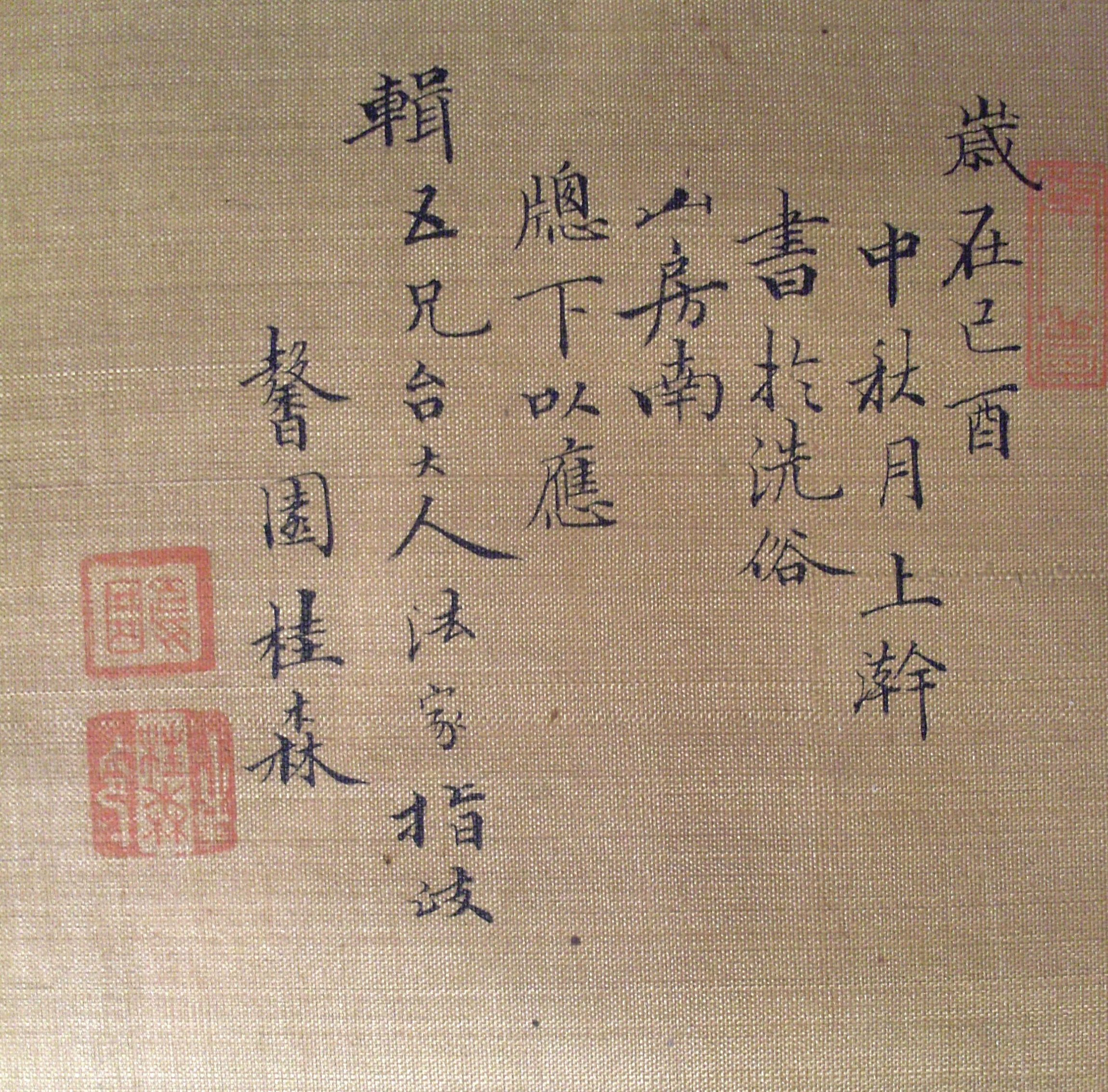 Информацiя об оригiнале: У Свято середини осені року Жовтого Півня (1849? 1909?), аби показати найстаршому зі спілки п’яти майстрів, у кабінеті з вікном на південь на горі Сісу написав Сінь Юань Гуй Сень