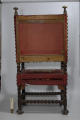 Потерта та потріпана оббівка особливо на сидінні, розхитані шишки на спинці, не вистачає декількох шляпок цвяхів.,
