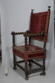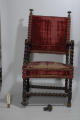 Сильно потерта оббивка, особливо на сидінні, обірвана оббивка вгорі на спинці та унизу над сидінням, розхитаний та надламаний стовпчик правого підлокітника. Відламана нижня частина однієї з ніжок. Не вистачає кілька шляпок цвяхів,