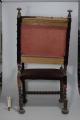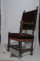 Сильно потерта та потріпана оббивка, розхитана спинка верхівки на спинці. Не вистачає багатьох шляпок цвяхів,