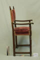 Реставрований у 2005-2006 роках. Деревина основи сильно пересушина. На передній царгі крісла розтріскування в місцях шипових з'єднань. Потребує провдення консеваційних заходів.,