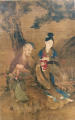Історія Атрибуціi: 1) Липень 1933 – грудень 1943 Ван Бінхуй (Жозеф Вампінфи) визначив як твір Ван Юаньсюнь (народився 1720 р.) і назвав його «Побажання довголіття з Дун Ван Ґуном і Сі Ван Му». Жозеф Вампінфи звернув увагу на те, що кажан символізує щастя і численних нащадків, олень – шляхетність і збагачення, а старець – довголіття. (рукописний архів музею 891 КЖ) 2) Консультанти від Музею Гугун, 1960 рік: "Оригінал"; 3) Соколов-Ремізов, консультант від Інституту країн Азії та Африки та співробітник Інституту історії мистецтва МК СРСР, 1965 рік: "Оригінал, але не 1720, а 1780 або 1840 рік" 4) Жовтень 2016р. Крівушкіна Ксенія Олександрівна, перекладачка китайської мови, художниця традиційного китайського живопису: « Зображена пара божеств є Богом Довголіття (Шоу Сін) і феєю Ма Гу. На це вказують іконографічні ознаки: Шоу Сін зазвичай має видовжене чоло, а Ма Гу - зачіску, в якій виразно видно чотири прядки волосся, прикрашену квітами під пучком волосся, зібраного на маківці. Постійним атрибутом феї Ма Гу є також персики (символ довголіття) кошик з квітами і грибами лінчжи.»/Кількість: 1/Старі документи прийому: Дарча від 27 травня 1959 р.
