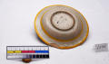 Закладка “Атрибуція” - Змiн.опис: Тарілочка з вузьким пласким бортом. Всю поверхню вкрито поліхромним розписом із зображенням на тлі пейзажу Амура, який грає на сопілці та тримає у лівій руці сурму. Фарби сині, зелені, жовті з білилом./Змiн. час створення: друга третина XVI ст. (каталог Рославець О.М. 2003 р.)місце створення, школа: ВенеціяНовый материал: майоліка