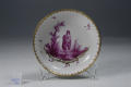 Авторські підписи, клейма: Марка синя підглазурна: ........ Сині підглазурні знаки: .... Вдавлені в тісто знаки: .... Знаки золотом: ......../Історія Атрибуціi: Консультація Соловєйчік Р.С. (Ермітаж, 1961 р.) - Франкенталь, 1760-і рр. (марка директора Бергдаля)/Кількість: 1/Опис: скруглене до низу, на кільцеподібній ніжці; розпис пурпуром, обрамлений знизу золтими рокайлями,: жінка, що стоїть у воді та підтримує одяг, зліва - дитина, що виглядає із за дерева. По краю борта орнамент золотом./Зв'язок з іншими предм. музею: блюдце до чашки 288-ПК МХ