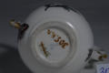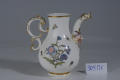 Авторські підписи, клейма: Марка синя підглазурна: схрещені мечі./Історія Атрибуціi: Консультація Соловєйчік Р.С. (Ермітаж, 1961 р.) - Мейсен, 1740 - 45 (глечичок для олії та оцту. Сухі квіти та комахи)/Кількість: 1/Опис: Глечик для олії або оцту з кришкою, грушоподібний; носик ребристий з маскародом, закінчується головою дельфіна; ручка з трьох завитків з рельєфним золоченим акантовим листям; розпис: великі квіти - лиловий, блакитний та комахи у розсип. На кришці дрібний букетик, комахи та золотий сітчастий орнамент по краю.