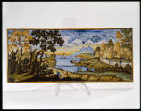 Закладка “Атрибуція” - Змiн.опис: Кахельпрямокутної форми, декорований морським карєвидом з фортецею на узбережжі.