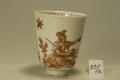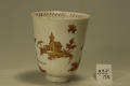 Комм.: Перша італійська мануфактура у Венеції була заснована в 1720 році золотих справ майстром Франческо Вецці (Vezzi). Вона виробляла справжню тверду порцеляну, на зразок мейсенської. До роботи по виробництву порцелянової маси був залучений виходець із Мейсена відомий золотар та емальєр Конрад Хунгер, який також працював у Відні. В наслідок відсутності в Італії хорошого каоліну, мануфактурі прийшлось працювати на саксонському, який завозили. Це стало однією з причин її швидкого занепаду вже у 1727 році. Особливістю порцеляни Вецці був черепок, який дуже просвічувався, та чиста прозора глазур. Розпис виконувався дуже якісно, найчастіше червоною фарбою двох відтінків та золотом у східноазійському стилі. Чашечка з блюдцем є характерними зразками продукції мануфатури Вецці за формою та розписом. Мануфактура існувала дуже короткий проміжок часу, з 1720 по 1727 р. Її вироби зустрічаються дуже рідко./Історія Атрибуціi: Консультація Соловєйчік Р.С. (Ермітаж, 1961 р.) - Венеція, Вецці, перша половина 18 ст. (Чашка для шоколаду. Дуже хороша за якістю)/Кількість: 1/Зв'язок з іншими предм. музею: до блюдця 55 ПК МХ